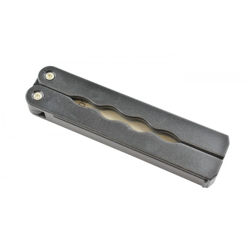 La pierre est composée de diamants de 2 types de grains différents : un grain grossier 400 pour faire un réaffutage de vos lames émoussées et un grain fin 600 pour ramener un bord tranchant comme un rasoir. Un marquage avec le numéro du grain est présent sur chacune des faces de la pierre. Avec cet aiguiseur pliant, vous pourrez obtenir d’excellents résultats d’affûtage très rapidement.