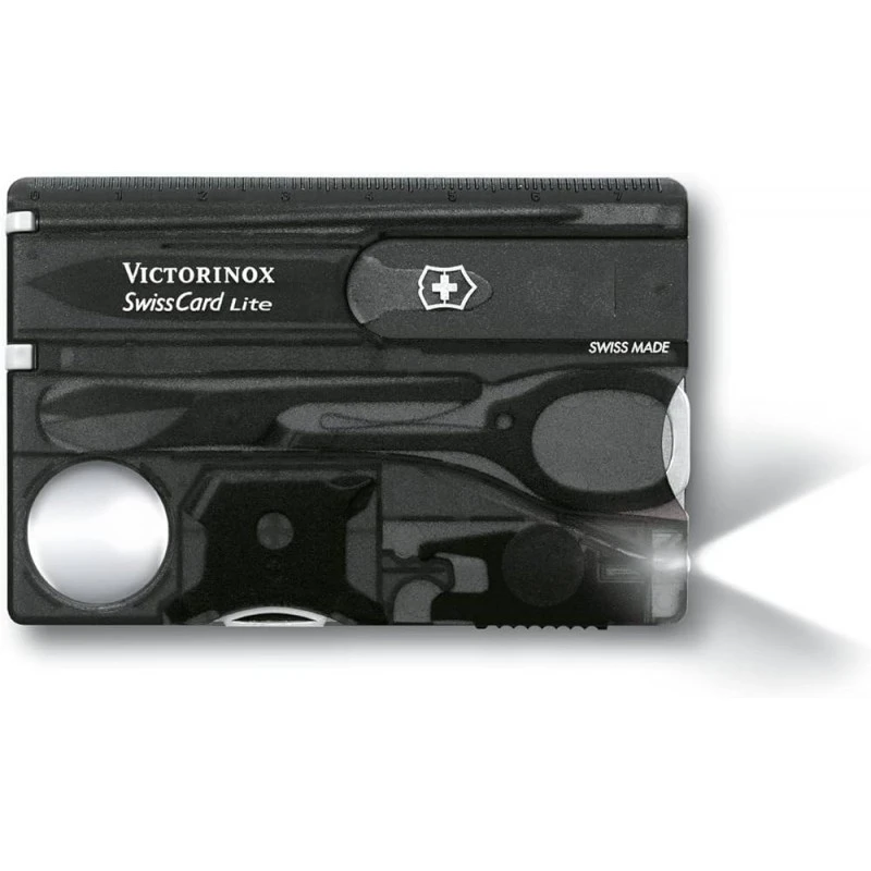 Cette carte multifonctions Swiss Card Lite par Victorinox affiche les mêmes dimensions que la version classique : 8,2 cm de long, 5,5 cm de large, 4 mm d’épaisseur et pèse 26 g. Elle se différencie par ses 13 fonctions, au lieu de 10.