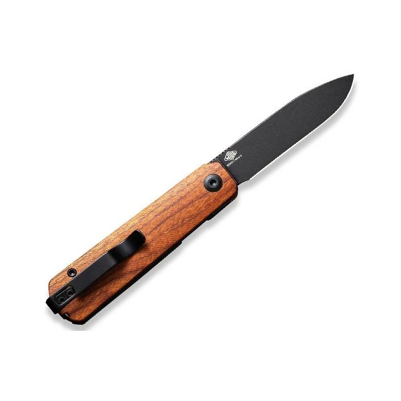 Le manche en bois de Guibourtia ajoute une touche d’élégance à l’ensemble. Il intègre également des fonctions pratiques telles qu’un cure-dents et une pince à épiler. De plus, le clip noir au dos de la poignée facilite le transport au quotidien. Livré avec une pochette en nylon noir, ce couteau est non seulement un outil fonctionnel, mais aussi un accessoire élégant pour accompagner vos aventures quotidiennes.