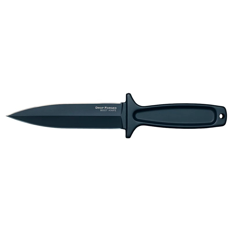 Le Cold Steel Drop Forged Boot est un couteau de botte conçu pour être transporté discrètement. Sa lame à double tranchant de 127 mm, en acier carbone 52100, offre une excellente capacité de coupe.