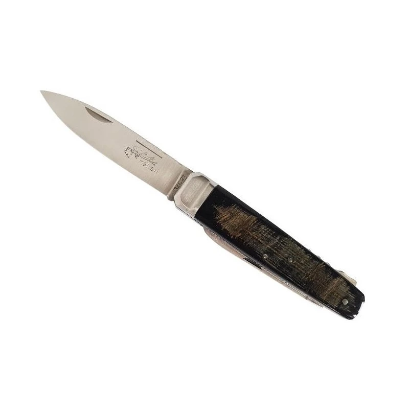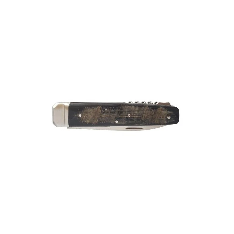 Fabriqué en France par Douris Chastel, ce couteau Hallali Chasse fait partie des modèles emblématiques de la marque. C’est un couteau polyvalent, doté de 3 pièces, à savoir une lame mate en acier inoxydable 12C27, une scie et un tire-bouchons. La lame se déploie plus facilement grâce à l’entaille pour ongle.