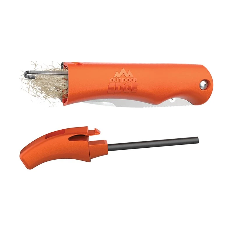 Le couteau multifonctions Ignitro, par Outdoor Edge, est doté d’un manche orangé en ABS sur lequel on peut aussi observer le logo Outdoor Edge. Facile à saisir ainsi qu’à manipuler, il mesure environ 12cm de long afin de pouvoir ranger facilement le couteau dans la poche ou dans le sac à dos. Pratique, l’allume-feu se range à l’intérieur de la poignée ce qui permet d’optimiser l’encombrement. Vous voilà bien équipés pour affronter les situations imprévues ! Longueur de la lame : 57mm, possibilité de gravure en supplément.