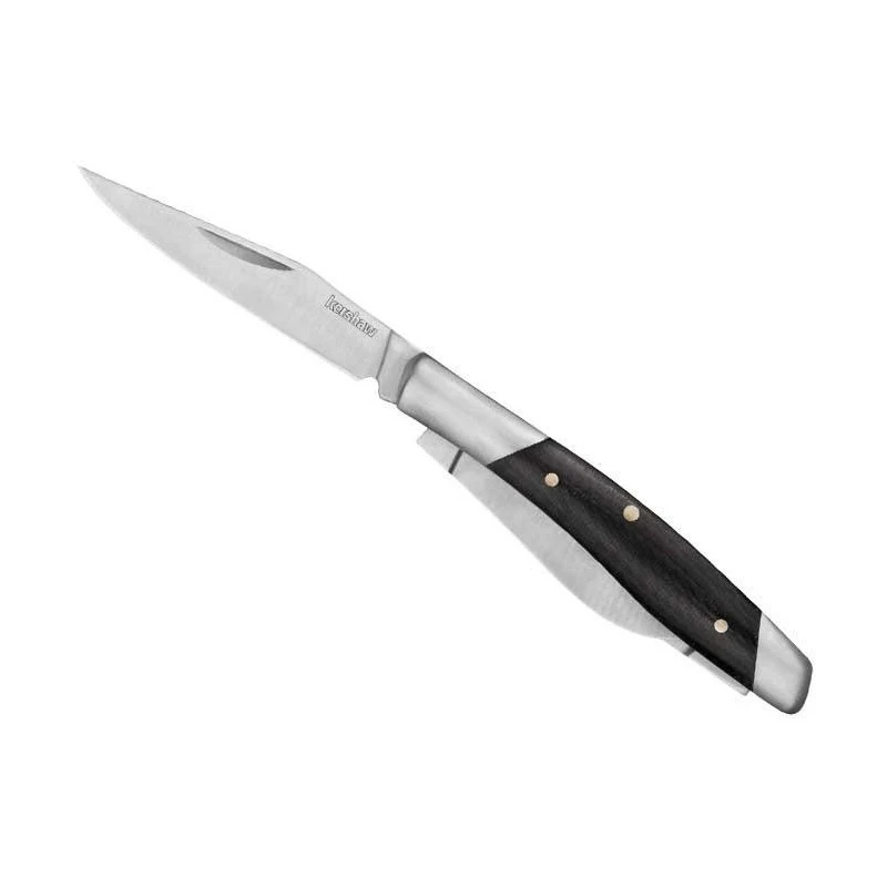 S’inspirant du légendaire naufrage du Peter Iredale à Astoria, le couteau Kershaw Iredale 4386 mélange avec habileté tradition et modernité. Doté d’un mécanisme sans verrouillage de type slip joint, il présente une lame clip point complétée par deux lames pied de mouton (Sheepsfoot), chacune adaptée à différentes tâches courantes. Sa poignée en micarta poli, renforcée par des éléments en acier et laiton, lui confère robustesse et élégance. Bien ancré dans la tradition, le Kershaw Iredale 3 pièces triomphe néanmoins dans le monde contemporain par son caractère distinctif.