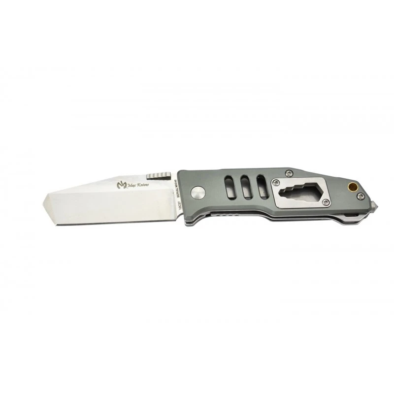 Le Max Knives MK115S est un couteau multifonction, qui par définition, est capable d’accomplir différentes tâches à lui seul. Vous l’apprécierez énormément pour son manche en aluminium avec une belle finition anodisée argent/silver, il mesure 95mm de long ce qui offre une facilité de port certaine. La belle poignée, confortable à manier qui plus est, fait aussi office de brise vitre, de décapsuleur ainsi que de clé hexagonale 4 tailles. Avec clip ceinture réversible au dos.