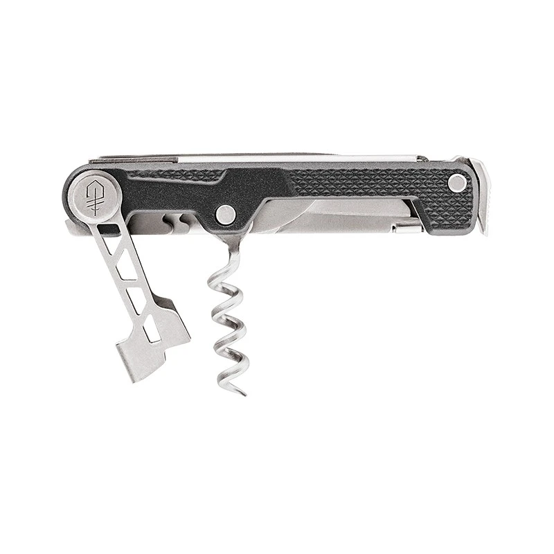 Le modèle GE003829 correspond au couteau Gerber ArmBar Cork Onyx, un multifonction qui permet très logiquement de pouvoir accomplir une multitude de tâches. Avec lui, l’utilisateur sera toujours en mesure de pouvoir ouvrir une bouteille ou se restaurer, et cela, peu importe l’endroit. Il intègre également une paire de ciseaux, un marteau, un levier et bien sûr une lame de couteau lisse en acier inoxydable 5Cr15MoV (Sheep Foot, verrouillage liner lock). Si l’on fait le cumul des outils, c’est au total pas moins de 9 fonctionnalités qui vous attendent, vous trouverez la liste détaillée au bas de cette page. Possibilité de graver l’outil lame par un texte au choix, au niveau des deux faces.