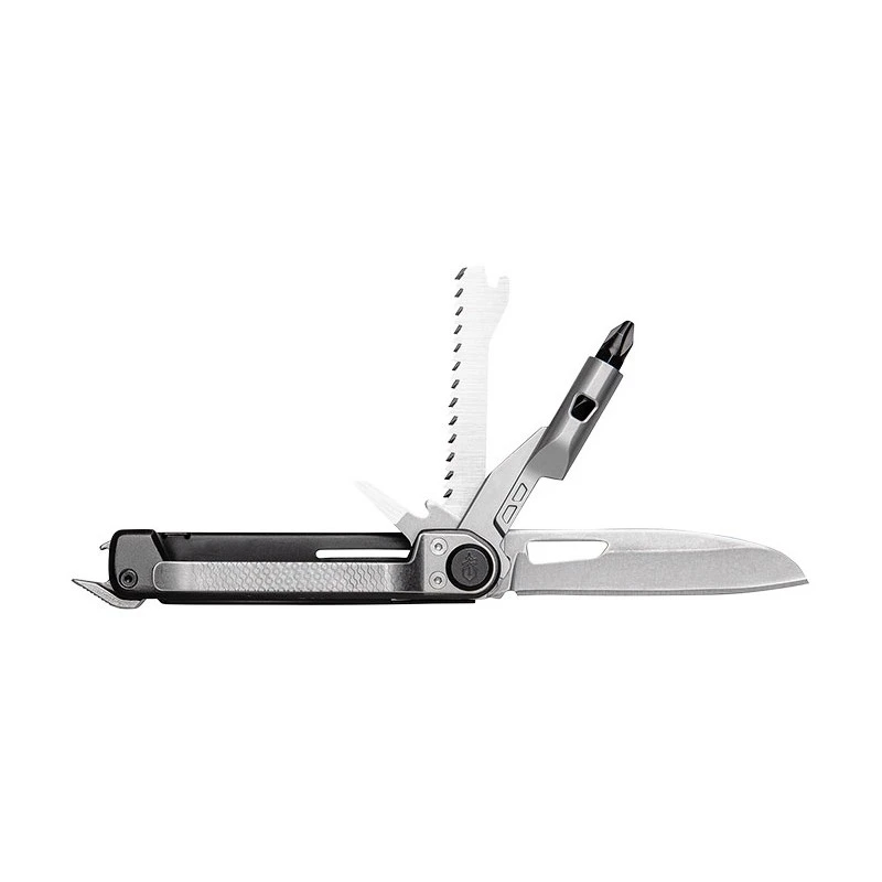 Alliant robustesse et esthétisme, il est conçu avec une structure en acier inoxydable, complétée par un manche élégant aux tons gris et noir. Sa lame drop point de 6,3 cm est parfaite pour une variété de tâches, tandis que les sept autres outils, incluant un tournevis à deux embouts, une alêne, une scie, un marteau, un levier et un décapsuleur, élargissent son champ d’action.