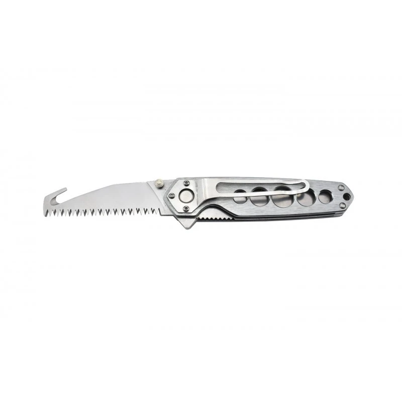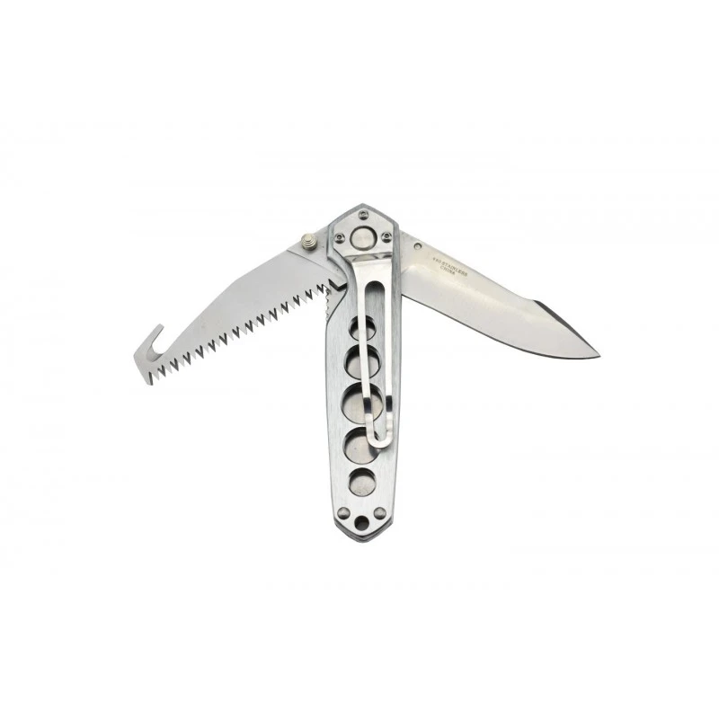Ce couteau multifonctions apparaît comme une solution tranchante à la fois polyvalente et économique. Les lames peuvent être simplement déployées par l’intermédiaire des boutons de pouce thumb stud. L’autre avantage de ce couteau Mtech, c’est qu’il est extrêmement compact par sa longueur de 12cm en position fermée, et donc simple à transporter. Son manche ajouré de formes rondes comprend un trou de lanière ainsi qu’un clip ceinture. Possibilité de personnaliser par gravure la lame au tranchant lisse.