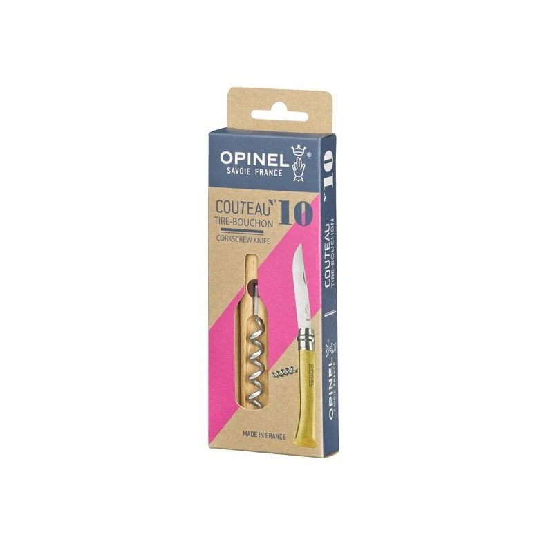 L’Opinel n° 10 tire-bouchon est le couteau de pique-nique à la française ! Sa particularité, c’est que son manche en bois de hêtre verni comprend un tire-bouchon doté d’une mèche professionnelle de 5 spires en acier inox trempé. Avec lui, vous serez toujours en mesure de pouvoir ouvrir une bonne bouteille de vin, pour bien sûr la consommer avec modération.
