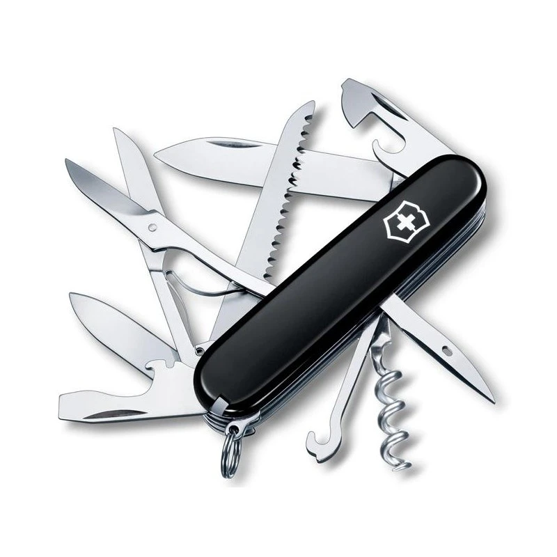 Le Victorinox Huntsman est un couteau suisse qui répond aux besoins des chasseurs et autres utilisateurs en quête de polyvalence. Un couteau multifonction fiable, qui intègre pas moins de 16 fonctionnalités, toutes très utiles pour la chasse, l’Outdoor et même au quotidien. Le couteau suisse Huntsman Victorinox possède par exemple une grande lame en inox, mais aussi une plus petite, un crochet multifonction, une scie à bois, des ciseaux et bien d’autres outils dont vous retrouverez la liste complète en bas de page. Faites un heureux ou une heureuse en optant pour la gravure sur lame, de quoi faire très plaisir en offrant un couteau suisse Huntsman personnalisé !