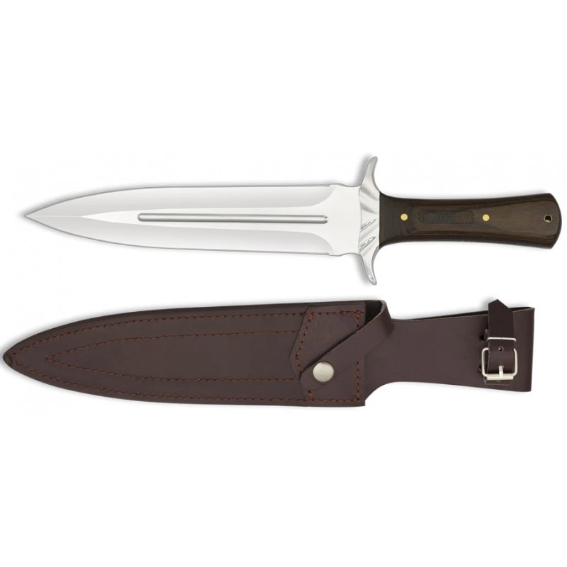 En dépit de la popularité des couteaux de chasse, cette dague s’impose comme une alternative de choix grâce à son double tranchant. Elle est également pourvue d’un étui en cuir, doté d’une boucle et d’un clip pour un transport aisé et sécurisé.