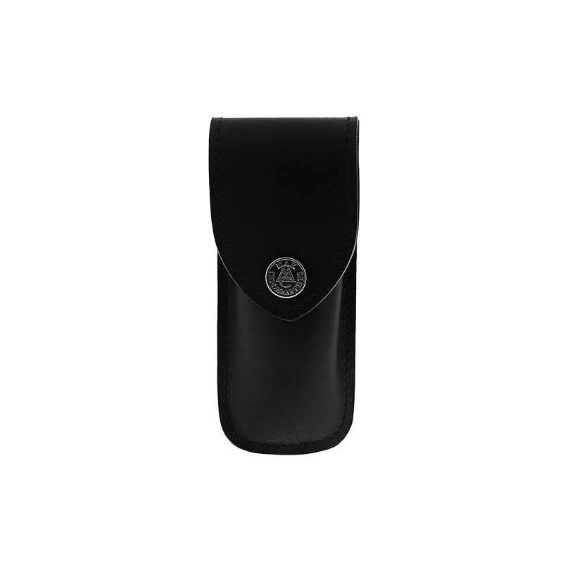 Conçu et fabriqué en France par Max Capdebarthes, cet étui « Randonneur » est fabriqué en cuir de couleur noire, et s’utilise sans difficulté via son bouton pression. Il convient pour les couteaux pliants forts ayant des manches compris entre 10 et 11cm de longueur. Il permet un port horizontal ou vertical pour s’adapter au mieux à vos préférences. Parfait pour protéger votre couteau avec élégance !