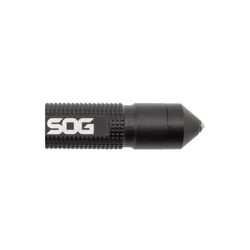 De la taille d’un stylo, le Flint SOG est l’accessoire incontournable de vos aventures Outdoor, type survie par exemple. Ultra léger (moins de 30 grammes) et compact, il se glisse sans difficulté dans un sac ou une poche, pour vous faire profiter de ses fonctions utiles en extérieur. Les voici :