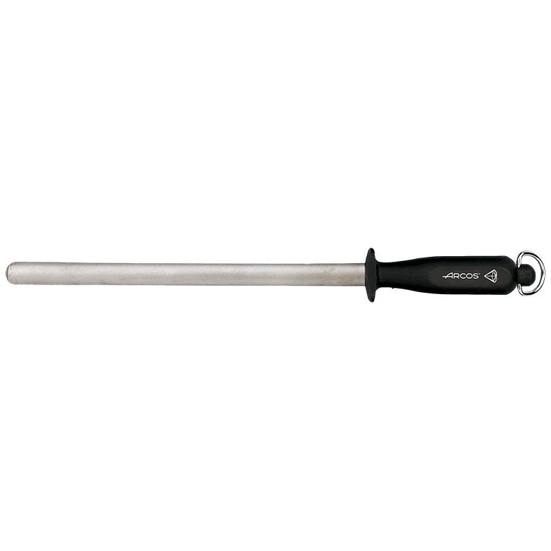 Les couteaux de cuisine demandent un réaffûtage régulier afin d’être les plus performants possibles et ainsi trancher les aliments efficacement. Pour réaliser cet entretien quotidien, un fusil d’affûtage est essentiel. Celui conçu par le fabricant d’Albacete Arcos est un ustensile de cuisine de toute première qualité. D’une longueur de 280mm, la mèche en acier carbone chromé octroiera un nouveau fil de coupe à vos objets coupants. Pour la tenir avec fermeté, le fusil à aiguiser signé Arcos est pourvu d’un manche couleur noire en polypropylène à la propriété antidérapante. Son design ergonomique permet une excellente prise en main. Une fois le réaffûtage terminé, vous pourrez introduire l’étui fourni sur la mèche et suspendre le fusil à un crochet de votre cuisine à l’aide de son anneau de suspension.