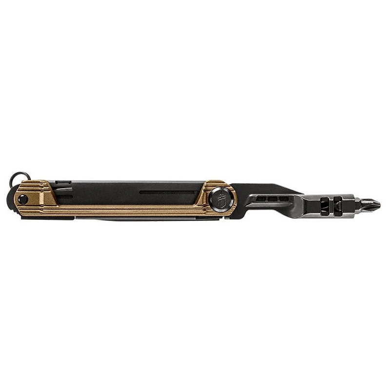 Le modèle Armbar Slim Drive de la marque Gerber est un couteau multifonctions qui vous permet d’accomplir avec brio les tâches les plus courantes de la vie : couper, visser et décapsuler. Tout cela dans un outil tout-en-un léger et robuste, avec un manche en aluminium coloris bronze brûlé en parfaite harmonie avec les outils revêtus de noir. Voici les fonctions disponibles :