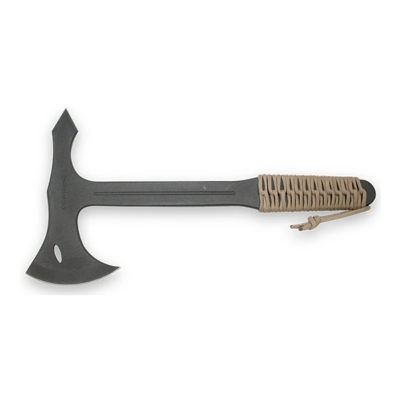 La Throwing Axe Condor est une hache de lancer conçue par Arlan D.Lothe. Idéale pour la pratique du lancer sur cible, elle dispose d’une lame de 176mm en acier carbone 1075, avec un revêtement poudré noir qui améliore la résistance à la corrosion tout en renforçant le style global. Le manche en encordé d’un coloris désert tan rend les utilisations beaucoup plus confortables. Gardez bien en tête qu’une prise en main plus agréable a un impact non négligeable sur la précision du lancer ! La hache est livrée avec son étui canvas, pour un port plus sécurisé.