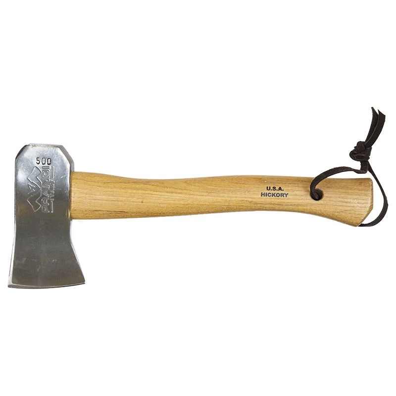 Idéale pour le camping ou les petits travaux d’abattage, la hache Prandi PR305105CHXA est équipée d’une lame en acier carbone C45 trempé et poli. Au tranchant lisse, elle est marquée par le logo de la marque italienne Prandi, le petit détail qui va beaucoup plaire aux fans. Un étui protecteur en cuir est fourni, pour venir sécuriser les déplacements avec la hachette.