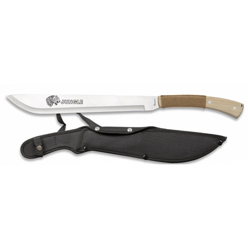 Cette machette Jungle de chez Martinez Albainox, modèle 32614, est équipée d’une lame de 43 cm en acier inoxydable 3Cr13MoV. Dotée d’une finition satinée et d’une épaisseur de 3mm, la lame est également décorée de l’inscription « Jungle » et d’une élégante tête d’animal de la jungle. Tout cela la rend particulièrement élégante, en plus d’être performante.