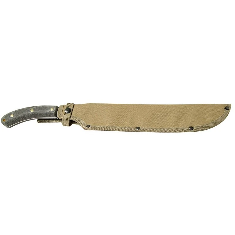 Que ce soit dans votre jardin ou en pleine jungle, la machette ESEE Darien se révèe être une véritable machine à hacher. Elle est équipée d’une longue lame de 314mm en acier carbone 1075, ainsi qu’un manche ergonomique en micarta qui vous apportera son lot de confort tout au long de la journée. De quoi ne plus jamais avoir peur de l’utiliser de façon intensive ! Notez que le manche est légèrement incurvé pour maximiser le confort. Le ESEE Darien est livré avec sa gaine en toile robuste de couleur beige, comme vous pouvez le voir sur les photos du produit.