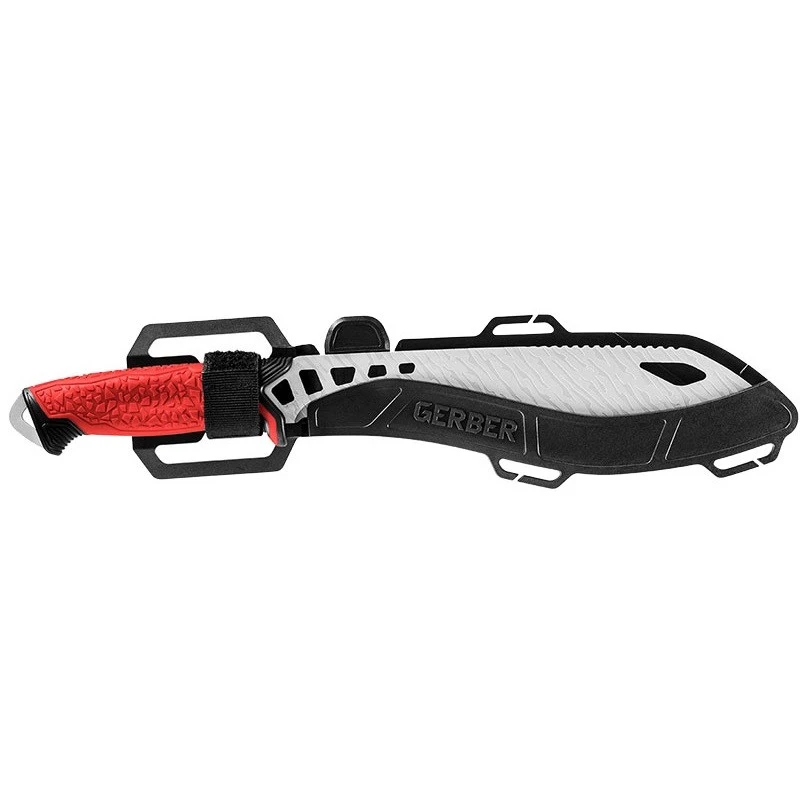 Le Gerber Versafix Pro Red est une machette taillée pour l’aventure, dotée d’une lame de construction full-tang en acier inoxydable résistant à la corrosion. La conception full-tang fait que la soie se prolonge dans le manche pour davantage de robustesse. De couleur grise, la lame mesure 22,9cm de longueur et s’avère être ajourée à de multiples reprises.