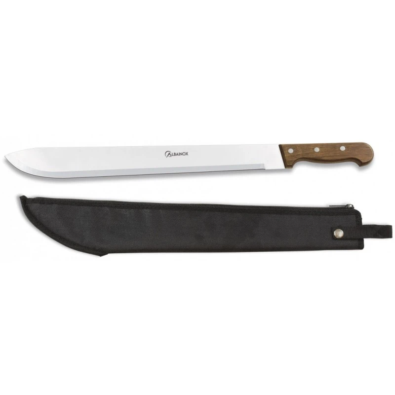 Grâce à cette machette latine 31712 de la marque espagnole Martinez Albainox, les aventures Outdoor se dérouleront désormais sans accroc. Elle est équipée d’une puissante lame de 42,5cm de longueur, en acier inoxydable 3Cr13MoV, épaisse de 2,86mm. Marquée du logo Albainox au niveau du centre, la lame est idéale pour débroussailler un chemin ou la préparation du camp. Elle est associée à un manche en bois de 15,5cm, à l’esthétique agréable mais surtout à la prise en main confortable. La machette est livrée avec son étui en nylon noir bien pratique au moment du rangement/transport.