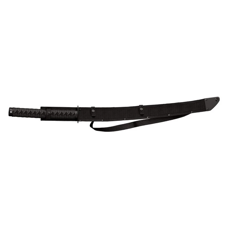 Cette machette Cold Steel imite à la perfection le style d’un katana, notamment celui de la série Warrior de la marque. Sa lame de 61cm est fabriquée en acier 65Mn avec une finition noire mate qui améliore largement la résistance à la rouille. De forme incurvée, ses performances sont semblables à celles d’une épée, c’est dire ! La construction est de type pleine soie, large, pour assurer une très bonne solidité, et donc durabilité dans le temps.