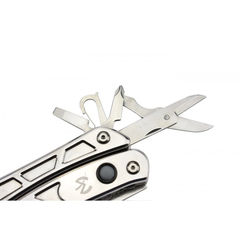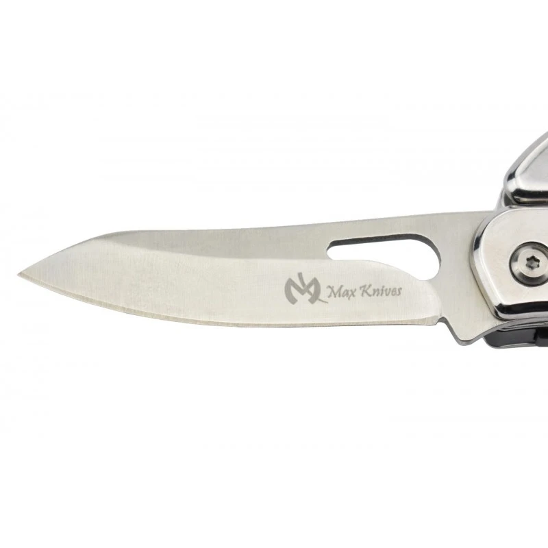 Le Max Knives T1 est un couteau multifonction en forme de pince, parfaitement adapté pour un usage quotidien. Sa fabrication en acier inoxydable lui vaut une parfaite résistance face à la corrosion ou rouille, on mentionnera le fait que la poignée est décorée par le logo Max Knives. Une poignée qui comprend des motifs de formes géométriques pour le style, l’élégance ! Voici la liste complète des fonctionnalités de la pince couteau multifonction Max Knives T1 :