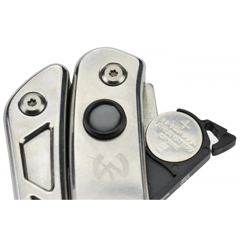 Le mousqueton confère un transport plus simple et plus fiable, les deux lampes LED offrent une grande polyvalence, même dans l’obscurité la plus totale. On mentionnera le fait que les deux piles bouton de type CR1616 sont fournies. La lame mesure 76mm de long, elle est ajourée et personnalisable par procédé gravure, et ce, au niveau des deux faces. Le logo Max Knives est une nouvelle fois de la partie, sur sa face avant. Livré avec un étui ceinture de type cordura, très pratique pour emporter la pince partout, avec aisance.