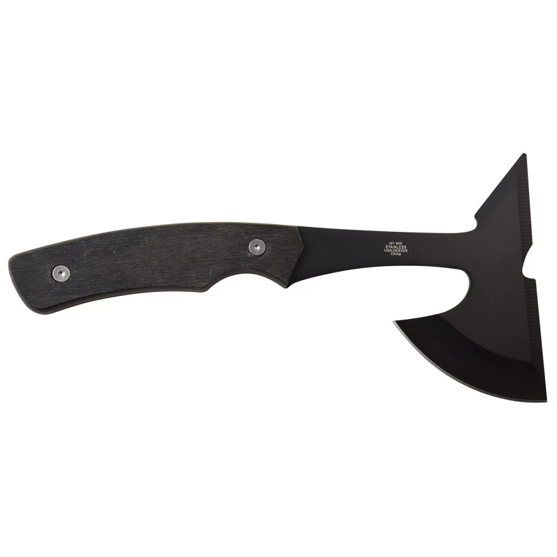 Ce tomahawk Mtech USA MT-600BK bénéficie d’une lame de 76mm en acier inoxydable 3Cr13, de construction pleine soie (full tang) pour davantage de solidité, résistance. Celle-ci dispose d’une finition noire qui suit bien avec le manche en pakkawood de couleur sombre. La prise en main est très confortable, même en cas d’utilisations prolongées.