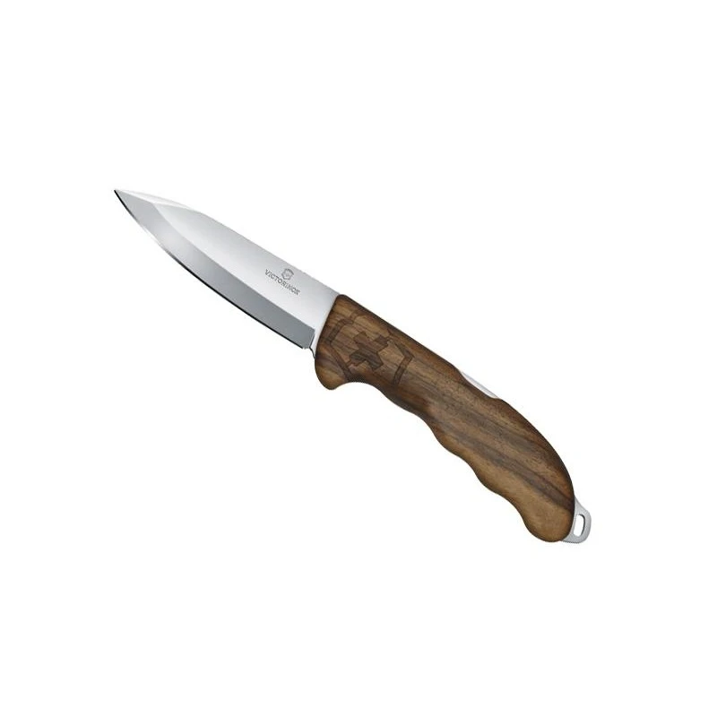 La forme du manche, en noyer, est très ergonomique, offrant une prise en main confortable pour une utilisation prolongée. La longueur totale du manche est de 136 mm, ce qui est idéal pour une utilisation en extérieur. Le Hunter Pro Wood est également équipé d’un trou de lanière, offrant une option de transport pratique.